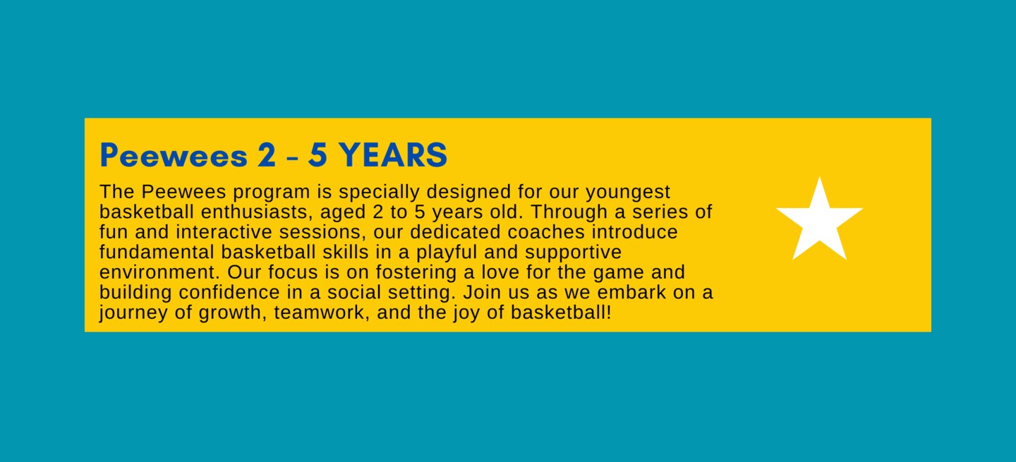 The Peewees program is specially designed for our youngest basketball enthusiasts, aged 2 to 5 years old. Through a series of fun and interactive sessions, our dedicated coaches introduce fundamental basketball skills in a playful and supportive environment. Children will learn the basics of dribbling, passing, and shooting while developing essential motor skills. Our focus is on fostering a love for the game and building confidence in a social setting. Join us as we embark on a journey of growth, teamwork, and the joy of basketball!
